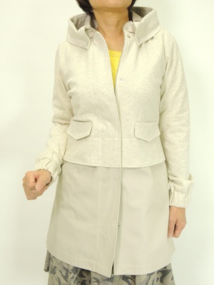 フェミニンカジュアルにはスエットを使った異素材コートを合わせてこなれた感じに!フェミニン度70%、アクティブ度30%。