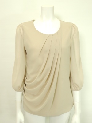 ブラウスをスカートにふんわりインしたらベルトでウエストマークして。上下のふんわり感でウエストを細く見せます!フェミニン度80%、エレガンス度20%。