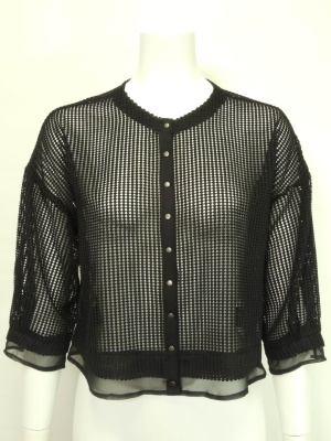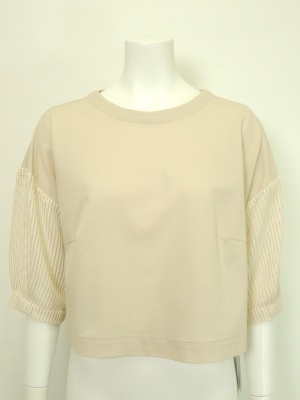 メッシュが涼しげなアンサンブルはショート丈なので、ふんわりスカートにもよく合います!フェミニン度80%、エレガンス度20%。