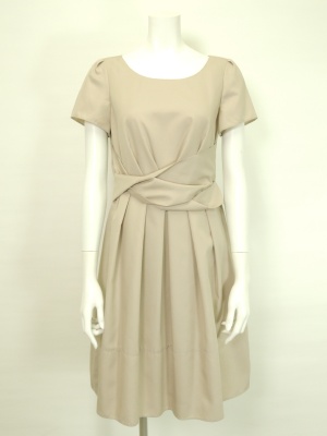 フェミニンなXラインのワンピースにはコンパクトなジャケットを羽織って。ウエスト位置が高く見える上品コーデです!エレガンス度70%、フェミニン度30%。