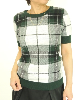 ハリのあるスカートにはコンパクトなニットがお似合い。ニットはリボンが後ろにしてネックレスをプラスしています!フェミニン度80%、エレガンス度20%。