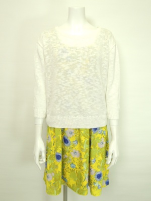 (ライムグリーンニットで春を感じるコーデ)鮮やかなライムグリーンが目を引くトップスに、ストライプ柄のフレアスカートを合わせた華やかなコーディネート。トップスはゆったりとしたシルエットで、体のラインを拾わずリラックスした着心地。スカートは縦ラインを強調し、 動くたび美しいシルエットを演出します。シンプルな組み合わせながら存在感のある配色で映えるスタイル。 | |