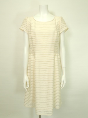 ライトベージュでまとめた上品なコーディネートはブラウンの小物でアクセントに!エレガンス度80%、フェミニン度20%。