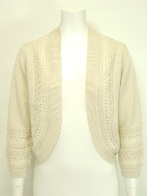 春のお出かけにはレースのワンピースを着てみたい。ボレロと華奢なネックレスで清楚にまとめて!エレガンス度60%、フェミニン度40%。