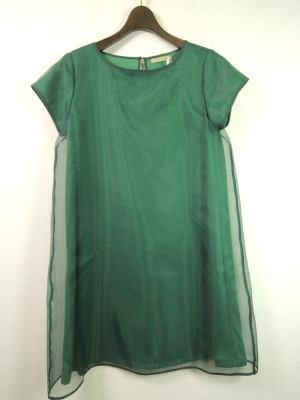 オーガンジーの生地を重ねたお洒落なワンピース。シックな色合いには華やかなストールが良く似合う!フェミニン度60%、エレガンス度40%。