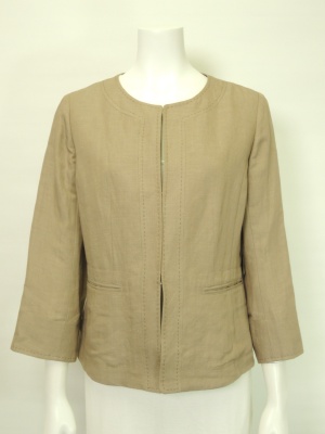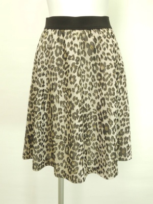アニマル柄のスカートと麻のジャケット。同じトーンの色でグラデーションをつけると上品なコーデに仕上がります!エレガンス度70%、スタイリッシュ度30%。