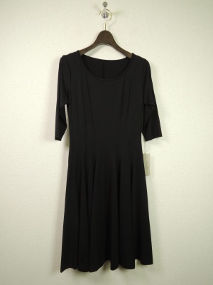 とろみのある生地を使用したワンピはスカートにボリュームを付けた分とトップスがフィットしたシルエットは大き目のアクセだけで良い!エレガンス度60%、スタイリッシュ度40%。