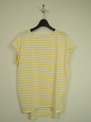 サラリと着られる黄色のボーダーカットソーと人気の定番パンツでデイリーファッションに!アクティブ度70%、スタイリッシュ度30%。