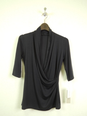 カシュクールタイプのカットソーはボーダースカートと組み合わせてスタイリッシュなコーデに仕上げました!スタイリッシュ度70%、エレガンス度30%。