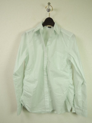 ロゴTとストライプのフレアースカートでフェミニンコーデ。プラスシャツを腰に巻けば綺麗目ハズシで元気カラー!フェミニン度70%、スタイリッシュ度30%。