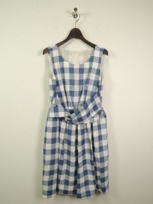 大きなギンガムチェック模様は夏の日射しにも負けませんね。濃いめのカーデで引き締めて!エレガンス度80%、フェミニン度20%。