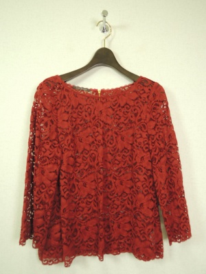 ボルドー色は秋一番に取り入れたい新色ですね。レースの透け感がオシャレ度をアップさせてくれます!エレガンス度80%、フェミニン度20%。