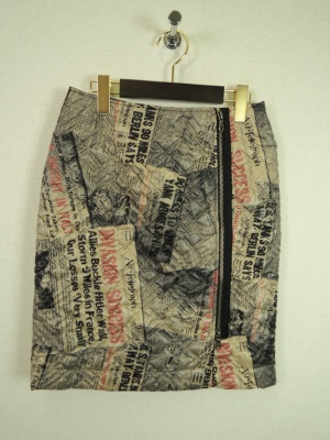 英字新聞をプリントしたボンディング生地のスカートはカジュアルコーデにピッタリ!アクティブ度90%、フェミニン度10%。