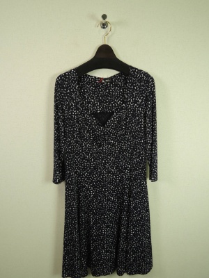 今からの季節にピッタリのインポートの総柄ワンピは近くで見ると花柄です。ゆるやかなフレアが足元で揺れてエレガントです!エレガンス度70%、スタイリッシュ度30%。