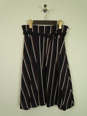 トラッドカラーのスカートはハイウエストでミモレ丈。そしてスウェット素材でとてもお洒落な一枚です。シンプルなニットとアクセでコーディネートしました!フェミニン度60%、スタイリッシュ度40%。