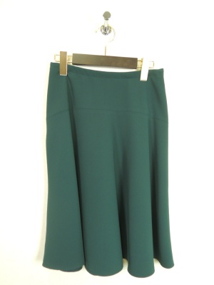 流行のグリーンのスカートに、柔らかいピンクの繊細なブラウスを組み合わせ、レザージャケットを羽織れば好印象大の甘辛コーデに!スタイリッシュ度60%、フェミニン度40%。
