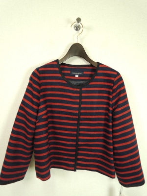 ボーダーのジャケットは可愛らしさと端正さを兼ねた一枚。黒のサラリとした素材の上下と組み合わせてカッコよく!スタイリッシュ度80%、エレガンス度20%。