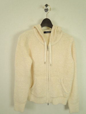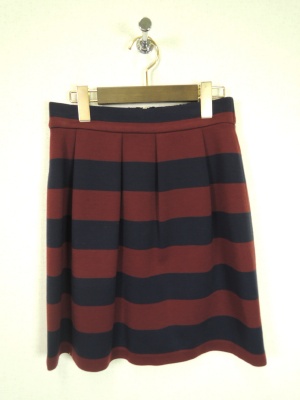 トラッドカラーのボーダースカートとオフホワイトのニットパーカのシンプルな組み合わせもシャツをうまく使ってアクセントを付けてお洒落に!アクティブ度80%、フェミニン度20%。