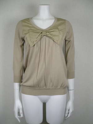 大きなリボンが特徴のニットはそれだけで存在感がありますね。Aラインスカートでオシャレ度もアップします!エレガンス度80%、フェミニン度20%。