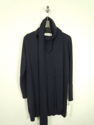 ニットのワンピースにロングの着流しカーデで無造作に着こなしてこなれ感を出す!スタイリッシュ度80%、アクティブ度20%。
