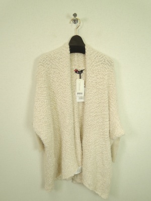 Aラインのワンピース。羽織ったニットカーデをオフホワイトにして明暗のあるコーディネートに!エレガンス度80%、スタイリッシュ度20%。