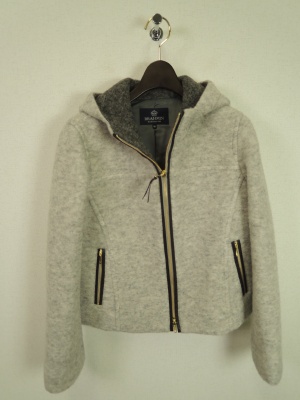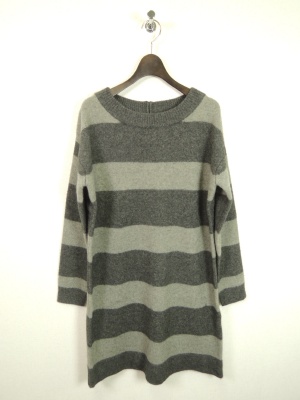 ボーダーのニットワンピにショート丈のフードコートを合わせてトップスに重心を置くことで軽やかな印象を与えてくれる!エレガンス度80%、フェミニンl度20%。
