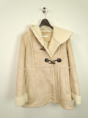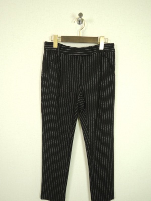 お袖の形に注目して頂きたいニットとピンストライプのパンツで旬なスタイルに!ムートンのコートがクラスカジュアル感をUP!スタイリッシュ度80%、フェミニン度20%。