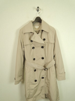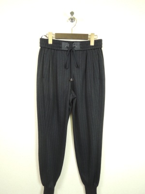 裾リブのストライプパンツはネイビーが新鮮。上質なニットはプレーンながらも旬のシルエット。白シャツとトレンチでカッコよくコーディネート!スタイリッシュ度70%、アクティブ度30%。