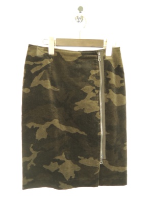 迷彩柄のスカートは明るめ色でまとめるとオシャレ度がアップします。黒のパーカは衿のボアが可愛いですね!アクティブ度80%、フェミニン度20%。