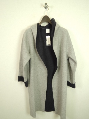 ニットは単体でも使える2WAYタイプ。ワンピーススカートのタフタ生地がノーブルな雰囲気。フードつきシンプルなニットコートをさらりと合わせて!フェミニン度70%、エレガンス度30%。