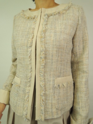 ノーカラーJKは春の行事服に欠かせないアイテムですね。ネイビーで清楚なスタイリング!エレガンス度70%、スタイリッシュ度30%。