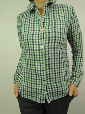 白のニットとシャツを重ね着すると立体感がでる。トレンチコートでラフなイメージに!アクティブ度70%、スタイリッシュ度30%。
