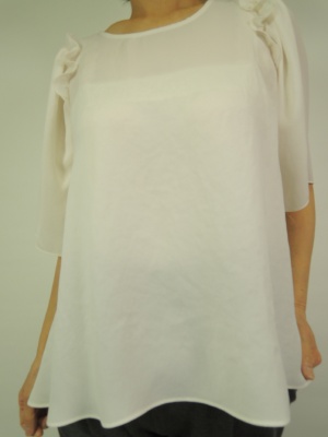 流行のミモレ丈のスカートは短いトップスを合わせば上半身に目線が集中してバランスよく見せてくれます!エレガンス度70%、フェミニン度30%。