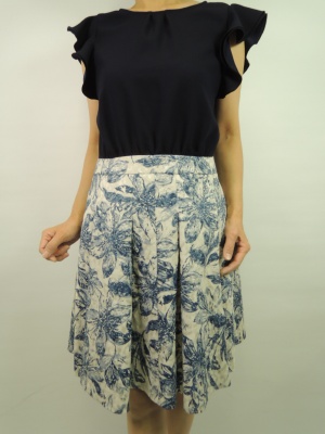 お袖のフリルとボリュームのある素材のスカートの組み合わせがエレガントな印象のワンピース!エレガンス度70%、フェミニン度30%。
