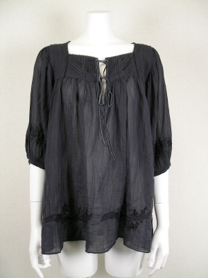 | スタイリッシュ・モダン (丈長のシャツは羽織として着こなす)襟無しの長袖シャツは丈長なのでパンツの上に羽織として合わせると重宝です。温度調整のしにくいこの季節にぴったりな一枚。 | |