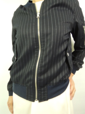 丈長のスカートにはコンパクトなブルゾンが良く似合うスタイリッシュ度70%、エレガンス度30%。
