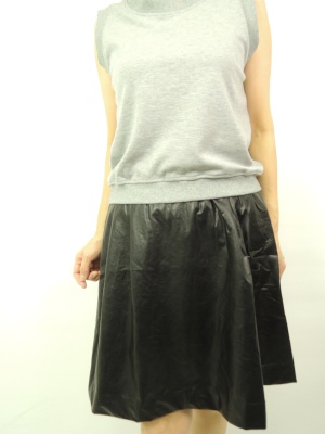 ドッキングワンピは合皮スカートとのコンビ。キラキラパーカでお洒落な休日ファッション!アクティブ度80%、スタイリッシュ度20%。
