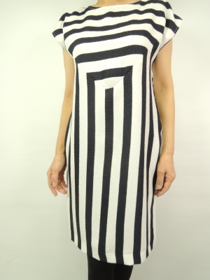 ストライプのワンピースは白×紺のメリハリの付いたモード感漂う一枚。色合わせは淡い紫で春らしく装いたい!エレガンス度70%、スタイリッシュ度30%。