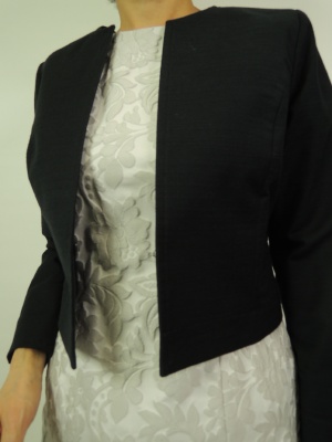 短丈のボレロジャケットは濃紺で上品に。入学式にピッタリのスタイルですね!エレガンス度90%、フェミニン度10%。