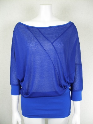 ハッキリした強めブルーが目を引くドルマンカットソー。ちょっと肩だしもOK。インナーはキャミよりタンクトップがヘルシーに見えます!スタイリッシュ度90%、アクティブ度10%。