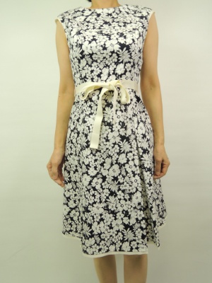 花柄はそれだけでフェミニンですね。白のリボンと裾から見える白の別布がよりフェミニン度をUP。赤のカーデでメリハリを!フェミニン度90%、エレガンス度10%。