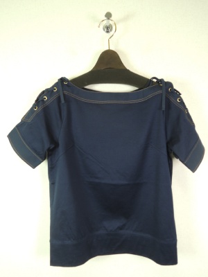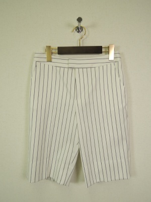白×ネイビーの爽やかな色合わせ。ショートパンツも流行のストライプでスッキリまとめて!アクティブ度70%、スタイリッシュ度30%。
