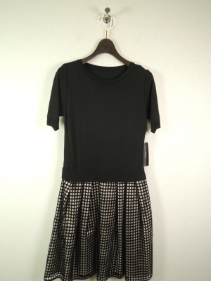 パンチングレースのお洒落なワンピース。切り替えのトップスがニット地で着やすい!エレガンス度90%、スタイリッシュ度10%。