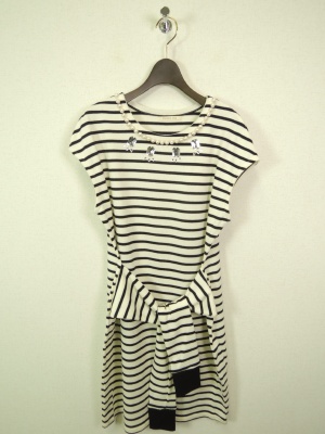 腰巻き風にデザインされたワンピース。着やすい素材にも関わらずビジューをあしらったお洒落なカジュアルワンピース!フェミニン度70%、アクティブ度30%。
