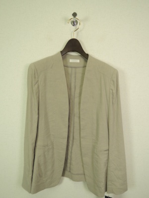 すとんと落ち感のあるワンピースにジャケットを肩にかけて、固すぎない大人のコーディネート!エレガンス度70%、スタイリッシュ度30%。