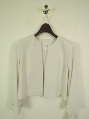 レース、それも優しい色の黄色です。ちょっとお出かけにノーカラーのジャケットできっちり感を出して!エレガンス度80%、フェミニン度20%。