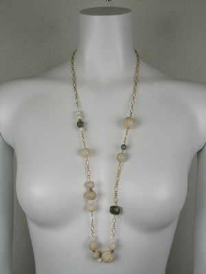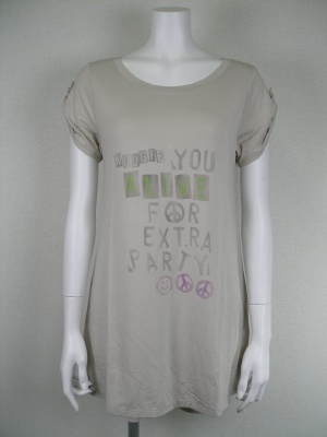シンプルなロング丈カットソー。裾からフリルのキャミワンピをのぞかせて、ワンピース風にアレンジ。短めの丈のざっくりニットとアースカラーのストールでナチュラル感を出します!アクティブ度70%、フェミニン度30%。