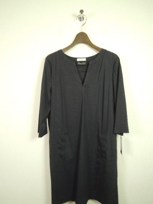 前上がりシルエットのサックワンピースはシンプルなデザインゆえに小物使いが良いスパイスに!エレガンス度90%、スタイリッシュ度10%。