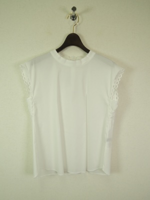 大人だからノースリーブが似合う。濃いめのネイビーでパンツとのコントラストにメリハリをつけて!フェミニン度70%、スタイリッシュ度30%。
