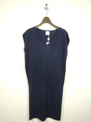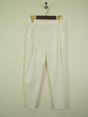 ワンピースは腰でブラウジング。白のストライプパンツでメリハリをつけて!スタイリッシュ度90%、フェミニン度10%。
